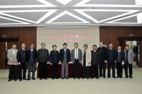 3月29日,2013年365完美体育职能部门工作目标签字仪式在365完美体育国际会议中心举行, 这标志着365完美体育职能部门全系统质量管理正式启动。党委书记于信汇、校长罗宏杰、首批参加职能部门工作目标管理工作的科技处、人事处、设备处、文科处、宣传部、研究生部分管校领导及部门负责人、以及组织部和学科办负责人参加了签字仪式。