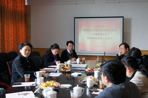 2013年1月18日,我校“都市社会发展与智慧城市建设”内涵建设项目组(085项目)召开了机制体制创新工作研讨会。校党委副书记、副校长李友梅教授出席并主持会议,相关机制体制创新研究子项目负责人参加了会议。