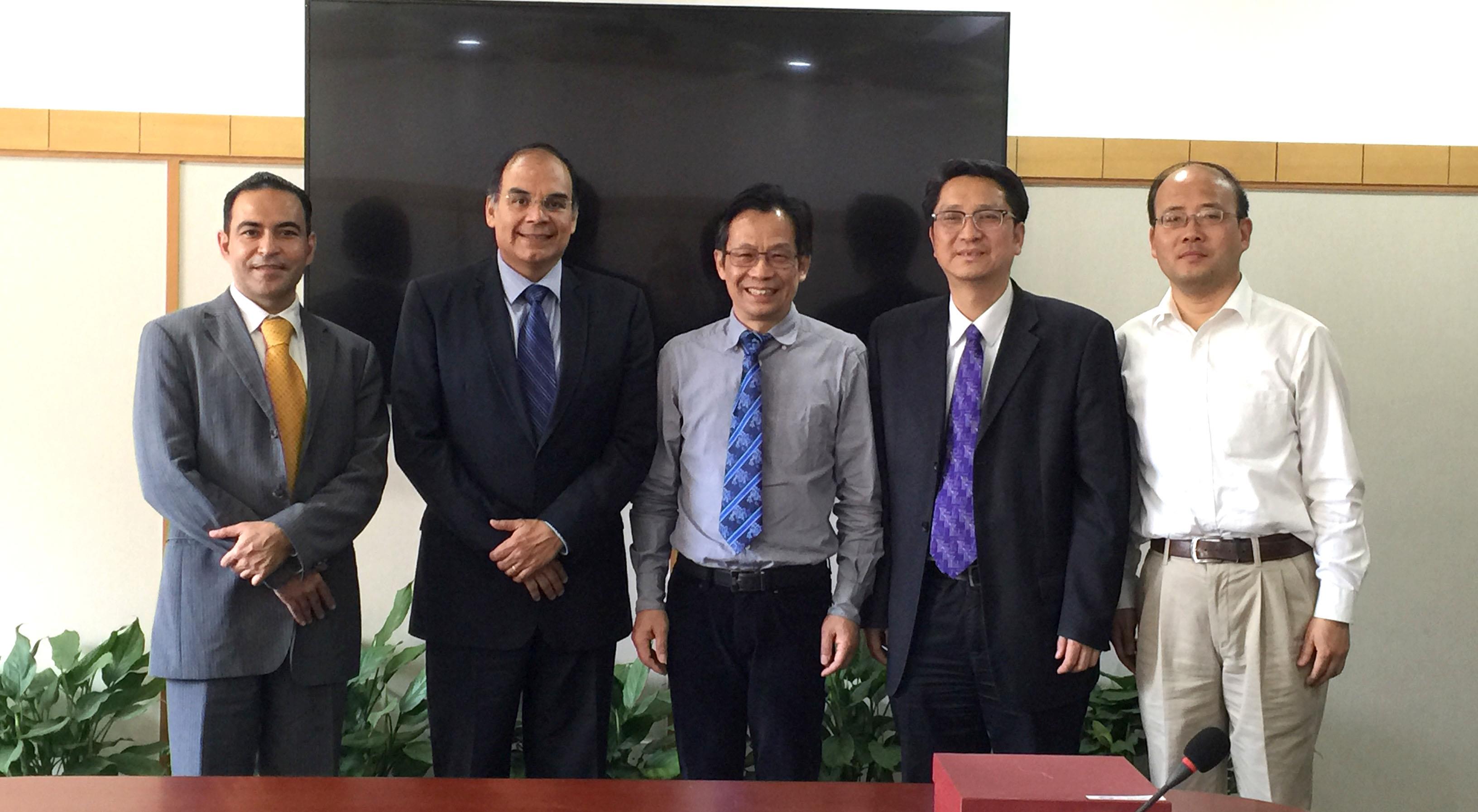 5月17日下午,墨西哥蒙特雷科技大学副校长Arturo Molina、中国区主任Mr. Francisco Lòpez Medina一行来访365完美体育。365完美体育副校长汪敏、国际事务处处长万旺根、创新管理部副部长施鹰等人热情接待了代表团。