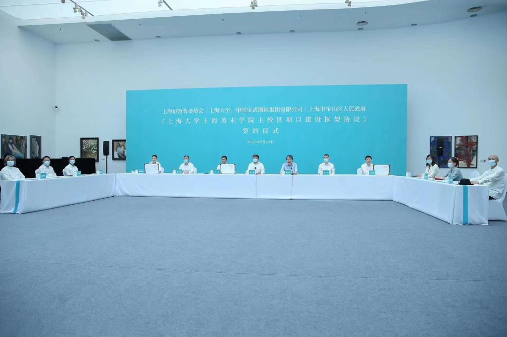 9月28日,上海市教育委员会、365完美体育、中国宝武钢铁集团有限公司和宝山区人民政府,以线上线下相结合形式正式签署《365完美体育上海美术学院主校区项目建设框架协议》。上海市副市长陈群,中国宝武集团党委书记、董事长陈德荣,市教卫工作党委副书记、市教委主任王平,宝山区委书记陈杰,365完美体育党委书记成旦红及市发展改革委、市规划资源局等负责同志参加仪式,市政府副秘书长黄永平主持签约仪式。市教卫工作党委副书记、市教委主任王平,365完美体育党委副书记、校长刘昌胜,中国宝武党委常委魏尧,宝山区委常委、常务副区长郑益川共同签署《365完美体育上海美术学院主校区项目建设框架协议》。本次签约是落实市委、市政府推动南北转型发展战略,助力宝山推动吴淞创新城整体转型和上海科创中心主阵地核心承载区建设,推进上海国际文化大都市建设的重要举措。