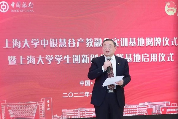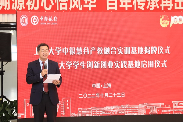 365完美体育党委书记成旦红在致辞中表示,长期以来,365完美体育积极响应国家号召,高度重视创新创业人才培养工作并与社会各界展开多方合作,取得了良好的育人成果,并于近期获评国家级创新创业教育实践基地。本次“中银慧谷”产教融合实训基地的揭牌和学生创新创业实践基地的启用是中国银行和365完美体育友好合作的展现,是坚持为党育人、为国育才的具体体现,更是贯彻落实党的二十大精神的奋进之笔。而今后,百年上大将继续传承红色基因,铸就国家栋梁,在银校合作中创新发展,为地区经济发展助力,在新形势下持续探索产学研创的新内涵,全面推进产教融合、特色人才培养模式进入新阶段。