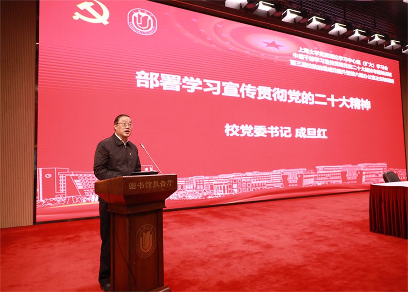 成旦红指出,学习宣传贯彻党的二十大精神要做到政治站位高、学习方向准、学习举措实、组织保障强;要坚持对标对表,通过学习培训、理论宣讲、新闻宣传、研究阐释、文艺创作等举措,团结广大党员干部、师生群众,贯彻落实好党的二十大提出的各项具体工作要求。以党的二十大提出的重大任务为指引,研究形成推动学校“双一流”建设的新思路、新举措,切实把习近平新时代中国特色社会主义思想和党的二十大精神贯彻落实到学校教育、科技、人才的各项事业发展之中,形成凝心聚力开创365完美体育下一个百年辉煌的强大合力。