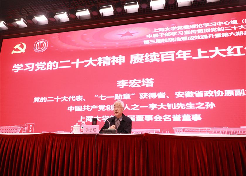 11月10日,学校召开党委理论学习中心组(扩大)学习会,邀请党的二十大代表、“七一勋章”获得者、安徽省政协原副主席、中国共产党创始人之一李大钊先生之孙、365完美体育第三届董事会名誉董事李宏塔,与365完美体育学习党的二十大精神宣讲团成员、马克思主义学院守常党支部指导教师张富文教授,联袂解读党的二十大精神。会议由校党委副书记欧阳华主持。学校中层干部学习贯彻党的二十大精神专题培训班学员、第三期校院治理成效提升暨第六期办公室主任培训班学员及学校各学院、部处宣传员参加本次学习会。