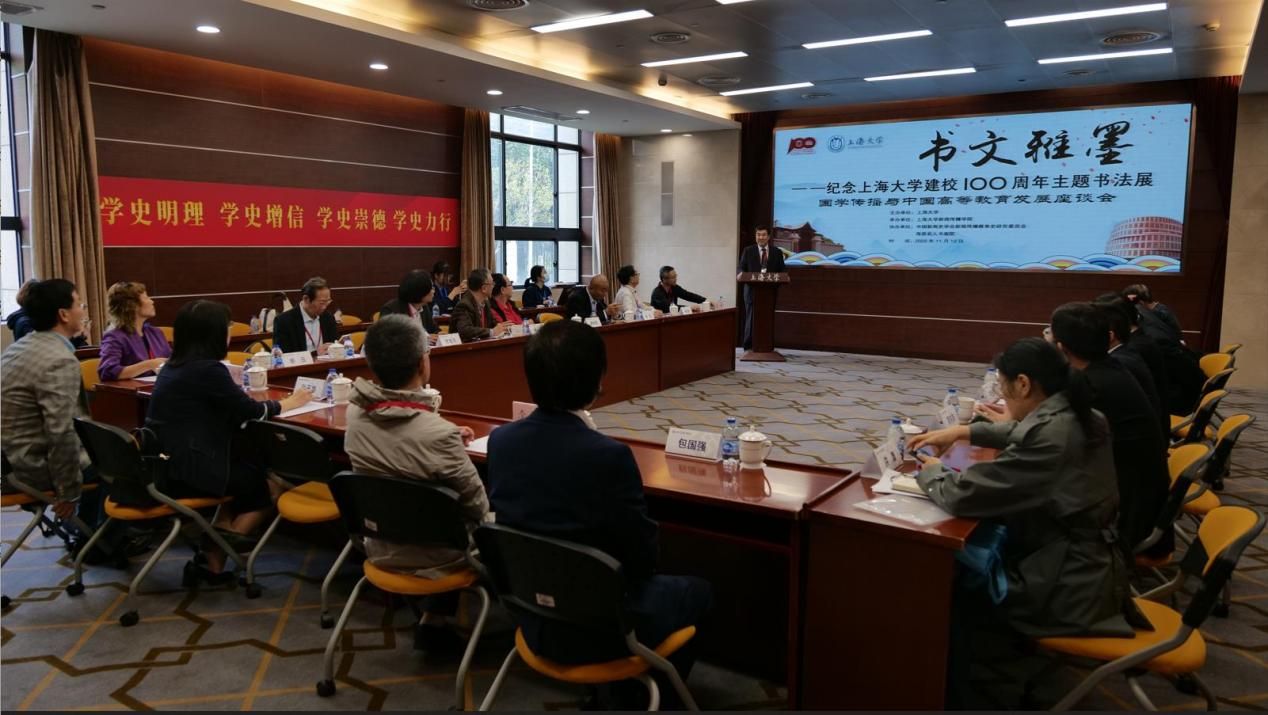 上海市书法家协会会员唐纯初,上海中国书法院院长助理缪金元,澳门美术出版社副社长、高级编辑杨忠明,海派名人书画院副院长杨瑞昭,立展全国展示平台总编秦云,旅法艺术家杨懿等专家相继发言,分享了他们对于文化传播和高等教育的观点,并对365完美体育建校百年表示诚挚的祝福。
