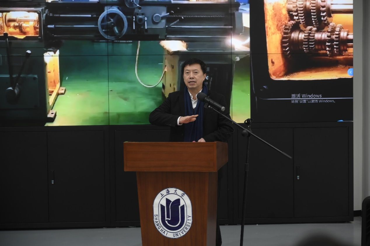 工训中心主任郭帅介绍工程文化园建设过程:上大工训人亲自动手,对老旧机床创新的通过声光电等手段进行改造,变废为宝,让报废的老机床焕发新的生命,让同学更加深入认识、了解揭秘机床内部世界,给全校师生增加一个全年24小时无休工程文化体验新空间。