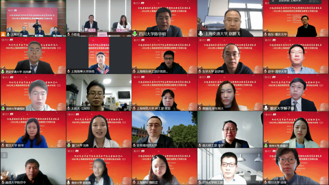 11月25日,由中共上海市教育卫生工作委员会、上海市教育委员会指导,上海市学生德育发展中心、365完美体育主办,365完美体育党委研究生工作部承办的以“红色基因传承与新时代研究生思想政治教育高质量发展”为主题的2022年上海高校研究生思想政治教育工作研讨会在365完美体育宝山校区乐乎新楼思源厅召开,会议采用线上线下结合的方式进行,由一个主论坛和两个分论坛组成。
