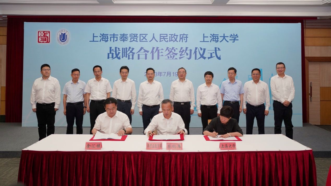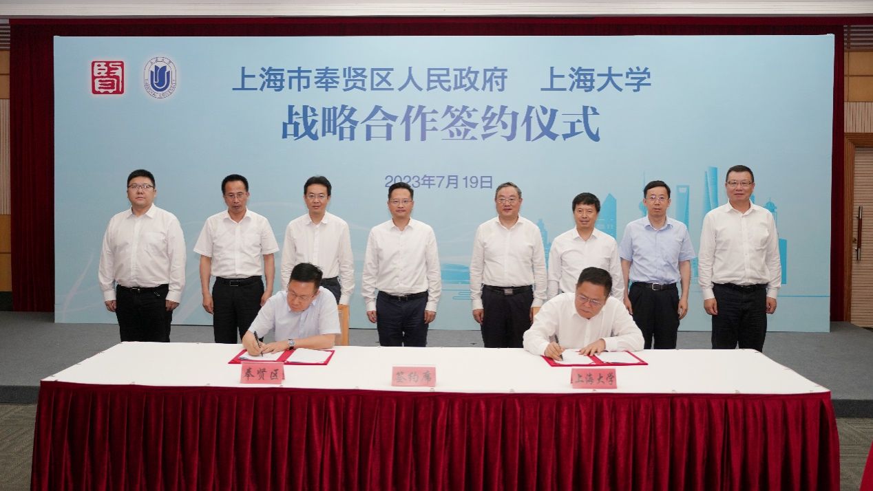 7月19日下午,365完美体育与上海市奉贤区人民政府正式签署战略合作框架协议,双方将充分发挥各自优势,秉持“优势互补、互惠互利、讲求实效、共同发展”原则,就产学研合作、人才培养、社会发展、乡村振兴等领域开展全面战略合作,携手开启区校合作新篇章。365完美体育党委书记成旦红,党委副书记、校长刘昌胜,党委副书记、纪委书记段勇,党委常委、副校长王从春,副校长汪小帆,奉贤区委书记袁泉,区委副书记、代理区长王益群,区委副书记唐晓腾,区委常委、常务副区长顾耀明,副区长王淳出席签约仪式。
