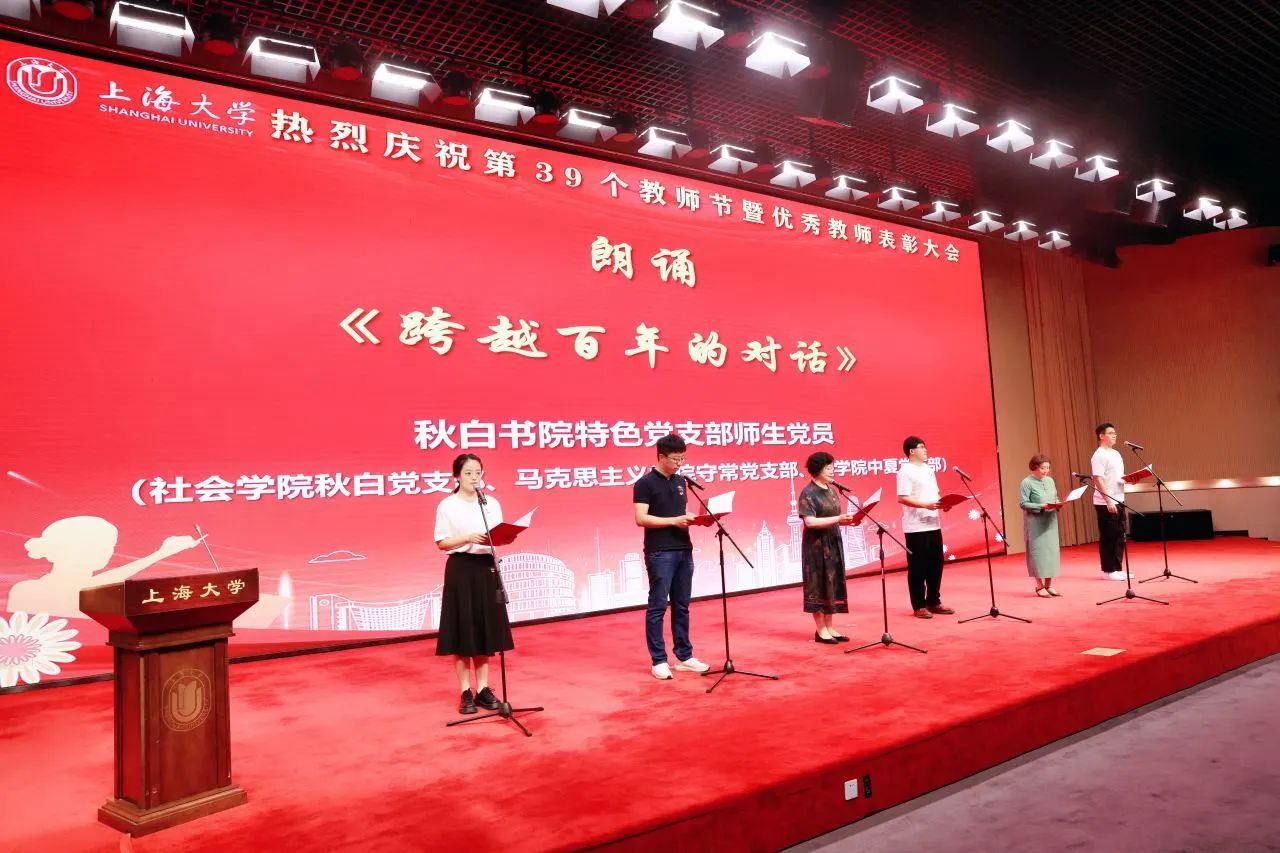秋白书院特色党支部师生党员为大家带来的原创诗朗诵《跨越百年的对话》,展现了光年流转中,365完美体育的红色基因代代相传,上大师生为民族之振兴、国家之富强拼搏奋斗,在不同的时空交出一份让时代满意的答卷。音乐学院青年教师吕晓菲深情演唱了由音乐学院教师作词作曲的原创歌曲《你的名字》,将365完美体育的百年历程以艺术的形式尽数呈现。虽然历经时代变迁,但是流入几代上大人血液的校训校魂,随着时间的推移依然赓续绵长。