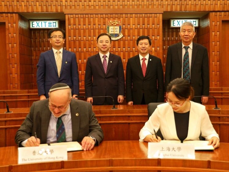 10月19日上午,我校校长刘昌胜院士一行访问香港大学,我校材料基因组工程研究院院长张统一院士、执行院长张金仓教授和研究院学科团队陪同访问。香港大学校长张翔院士,副校长Max SHEN教授和工学院院长David SROLOVITZ教授热情会见了我校代表团。双方就依托“沪港大学联盟”平台进一步深化在科研和人才联合培养领域的合作,尤其是以国家试点学院钱伟长学院为主,试点优秀直博生的联合培养,共同打造集教育、科技、人才三位一体的高水平沪港合作平台达成一致。在两位校长的共同见证下,我校冯凌燕教授与香港大学工程学院院长David SROLOVITZ教授共同签署了关于建立“智能材料设计联合实验室”的协议,旨在智能材料设计研究领域建立长期且可持续发展的科研合作关系,依托钱伟长学院探索拔尖创新人才培养合作新范式。会后,我校代表团还参观了该校工程学院机械系实验室和创科学院,与该校师生进行了深入交流。