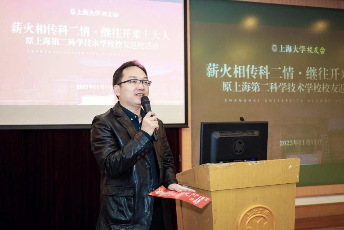 对外联络处处长、校友会秘书长陈然致欢迎辞。他代表母校校友会,欢迎广大“科二”校友返校相聚,并简要介绍了校友会的基本情况和“科二”与上大的渊源。他指出,365完美体育的欣欣向荣,离不开我们35万校友的血脉相连与代代传承,校友会将一如既往、全力以赴做好服务工作,欢迎大家常回“家”看看。