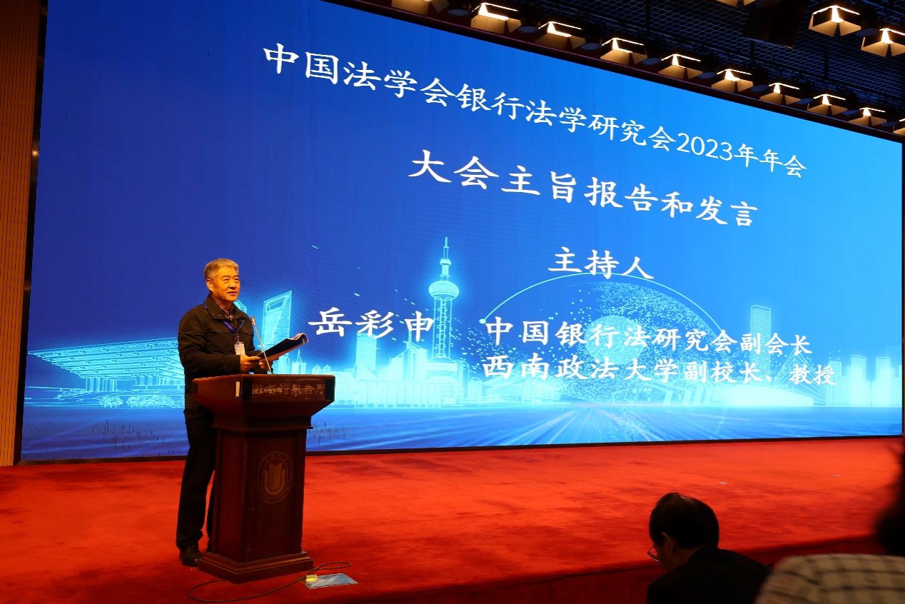 随后,进行的大会主旨交流发言环节,由中国法学会银行法学研究会副会长、西南政法大学副校长岳彩申教授主持。