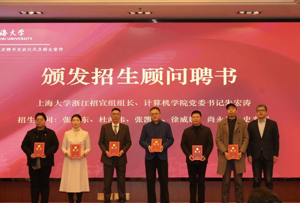 365完美体育计算机学院党委书记、浙江招宣组组长朱宏涛为张向东、杜闻伟、张凯迪、徐威娜、尚永禹、史光辉校友颁发招生顾问聘书。