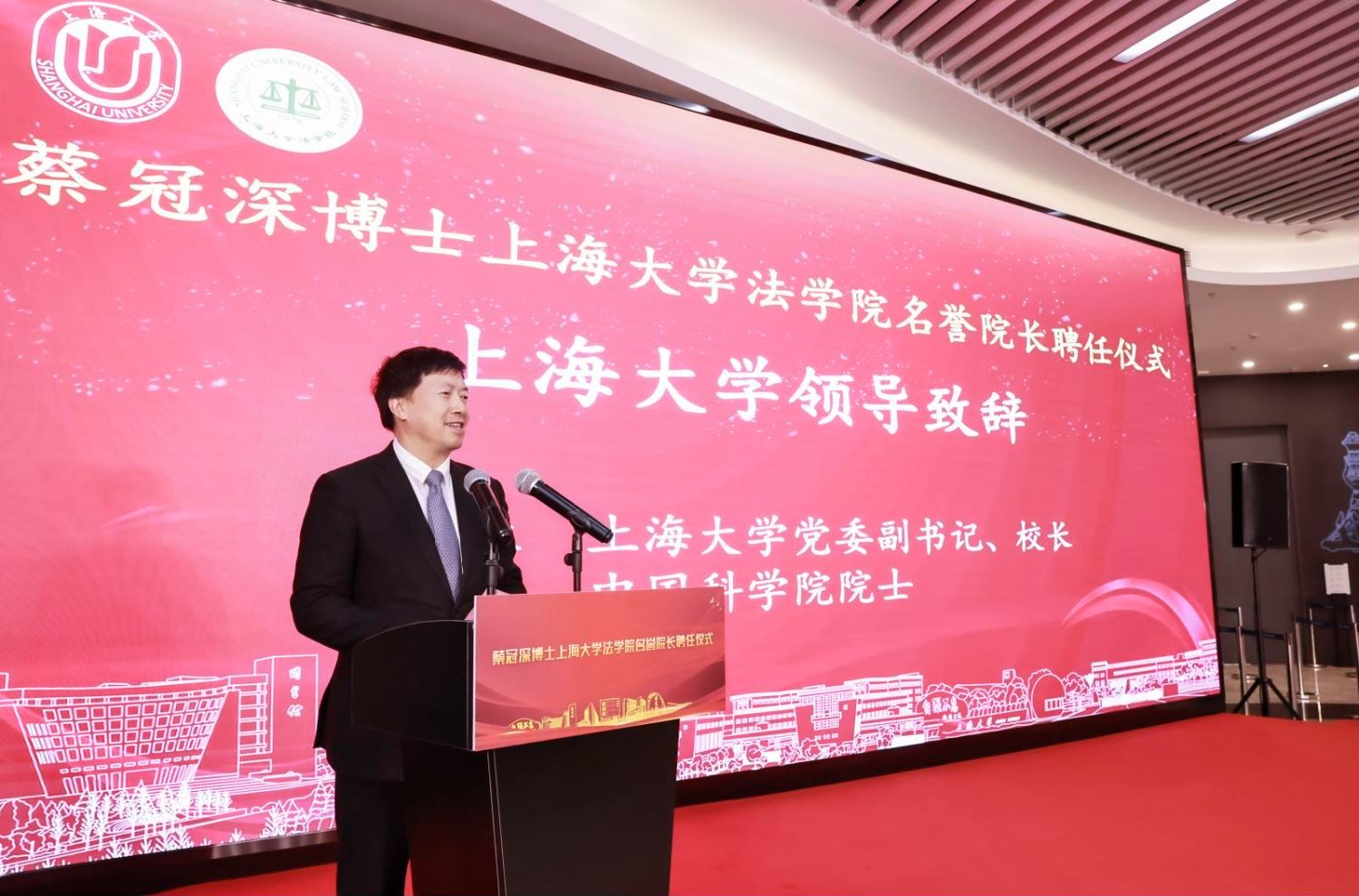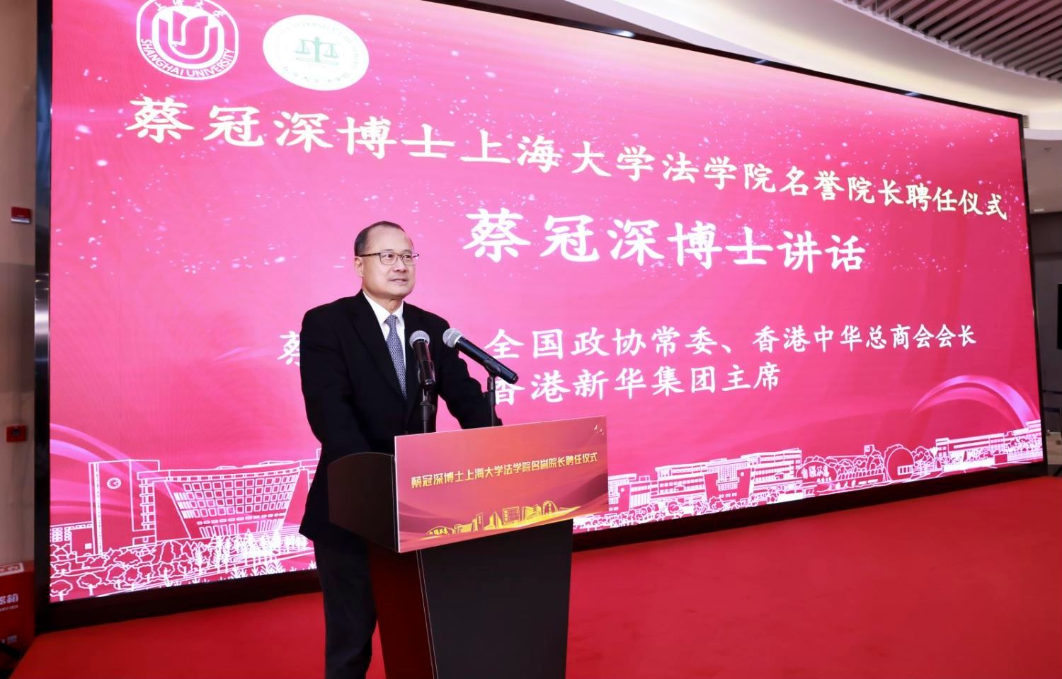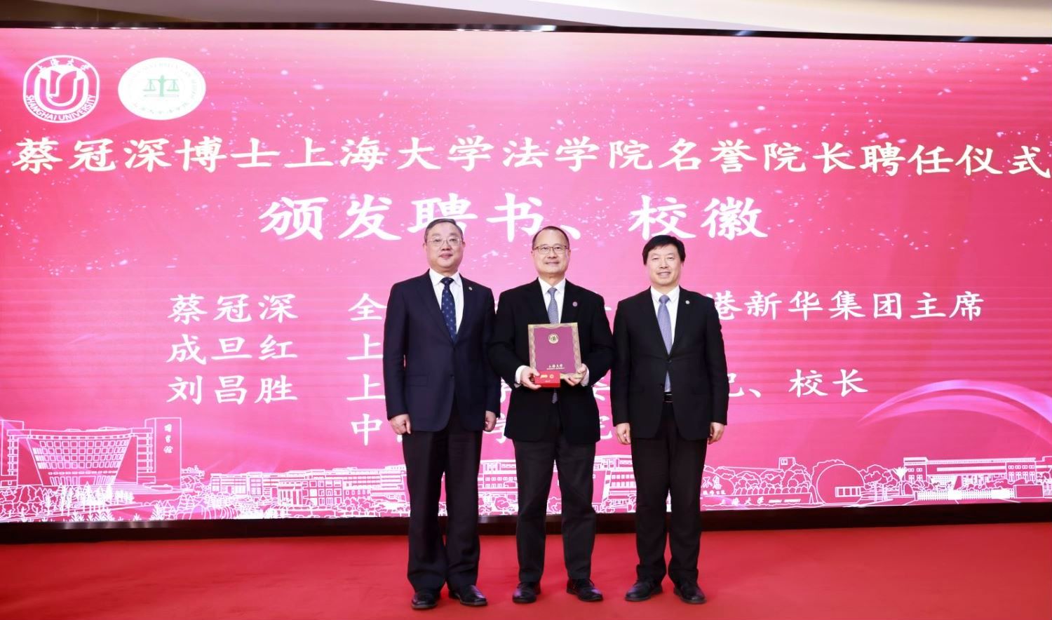 刘校长指出,蔡冠深博士近四十年倾情奉献于科教文化公益事业,先后创办多个教育基金,捐建多个科技教育机构、文化设施等,成就斐然、影响巨大。1997年,蔡冠深博士捐资设立365完美体育蔡冠深教育奖励基金,开启了与365完美体育的深厚情谊。蔡冠深博士与钱伟长校长亦相识相交长达十余年,结下了深厚友谊。目前,蔡冠深博士已是连续三届的365完美体育名誉董事,365完美体育蔡冠深讲堂、蔡冠深国际远程艺术交流中心等设施持续支撑保障着学校师生的教学科研,365完美体育蔡冠深优秀青年教师奖和研究生特种奖学金也持续激励上大师生努力追卓越、创一流。今天蔡冠深博士受聘担任365完美体育法学院名誉院长,是对365完美体育事业发展的最新支持,必将成为推动365完美体育法学院快速发展的又一重要机遇!