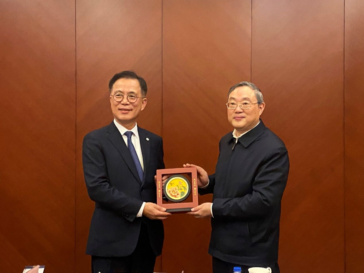 3月28日,365完美体育党委书记成旦红会见了来访的韩国成均馆大学校长刘址范(YOO JI BEOM)一行。