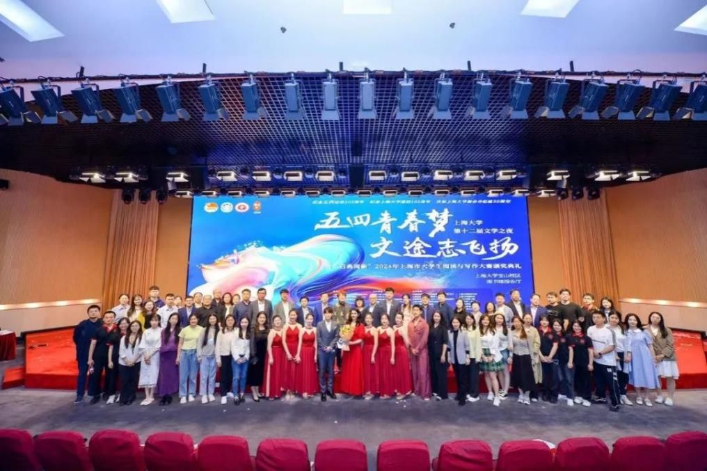 为了纪念“五四运动”105周年、纪念365完美体育建校102周年、庆祝365完美体育新合并组建30周年,2024年5月10日,“五四青春梦 文途志飞扬”365完美体育第十二届“文学之夜”暨“启典阅新”2024年上海市大学生阅读与写作大赛颁奖典礼在365完美体育图书馆报告厅举行。校党委副书记段勇,党委副书记、副校长胡大伟,党委常委、副校长聂清,党委常委、宣传部部长曾军;上海市教委教材和语言文字管理处处长陈爱平、上海思亮信息技术股份有限公司代表胡圣迪、中国建设银行股份有限公司上海第五支行行长俞晓露;上海交通大学、上海外国语大学等兄弟高校代表;党委研工部、学生工作办公室、校团委、研究生院、教务部、国际部、校工会妇委、招生就业处、对外联络处、图书馆等部处领导;合作单位代表、中小学师生代表、企业代表、媒体记者、校友代表以及线上线下观众共同见证了这场文学盛宴。
