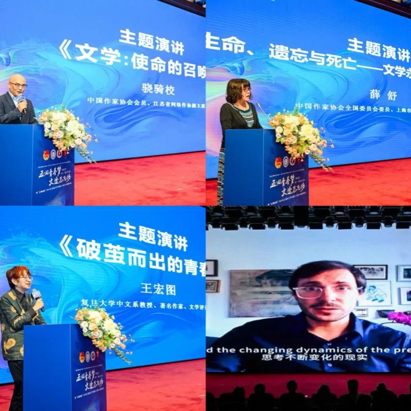 中国作家协会会员、江苏省网络作协副主席骁骑校作了题为《文学:使命的召唤》的主题演讲。他借助这个宏大命题,阐发了“文学不仅仅是一种艺术形式,更是人生的使命”的观点。每一位文学从业者都可以借助文学构建自己的理想世界,并给世界以启迪。