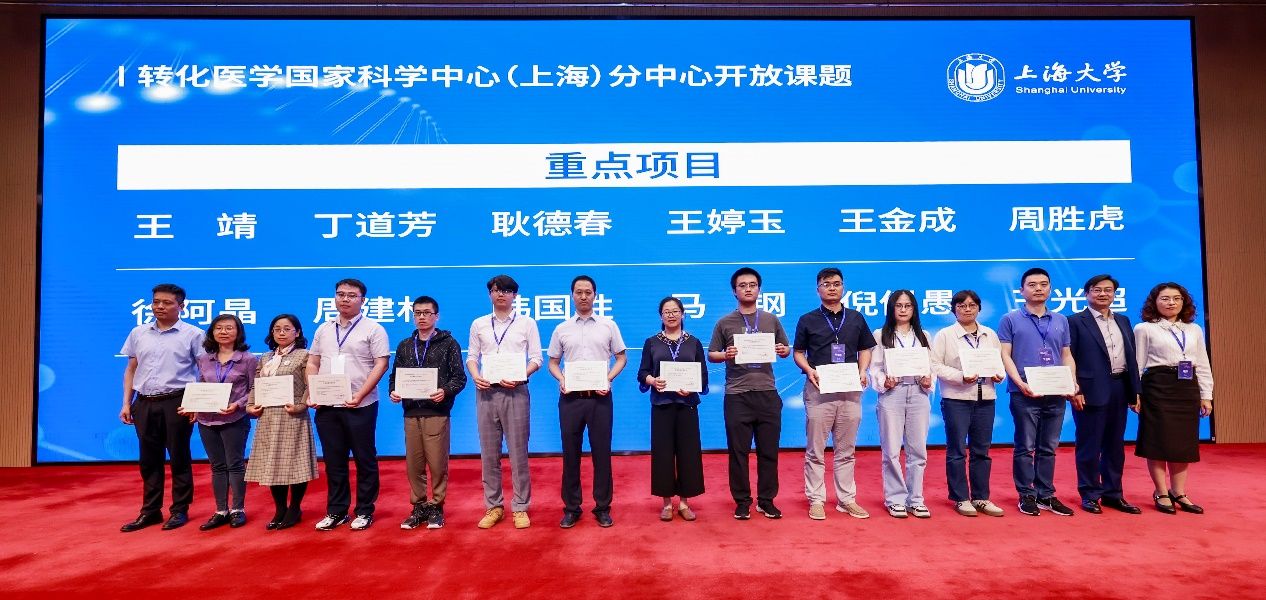 365完美体育高等研究院执行院长邵玮、医学院院长刘斌与生科院党委书记陈付学为转化医学国家科学中心(上海)上大分中心开放课题颁发获批证书