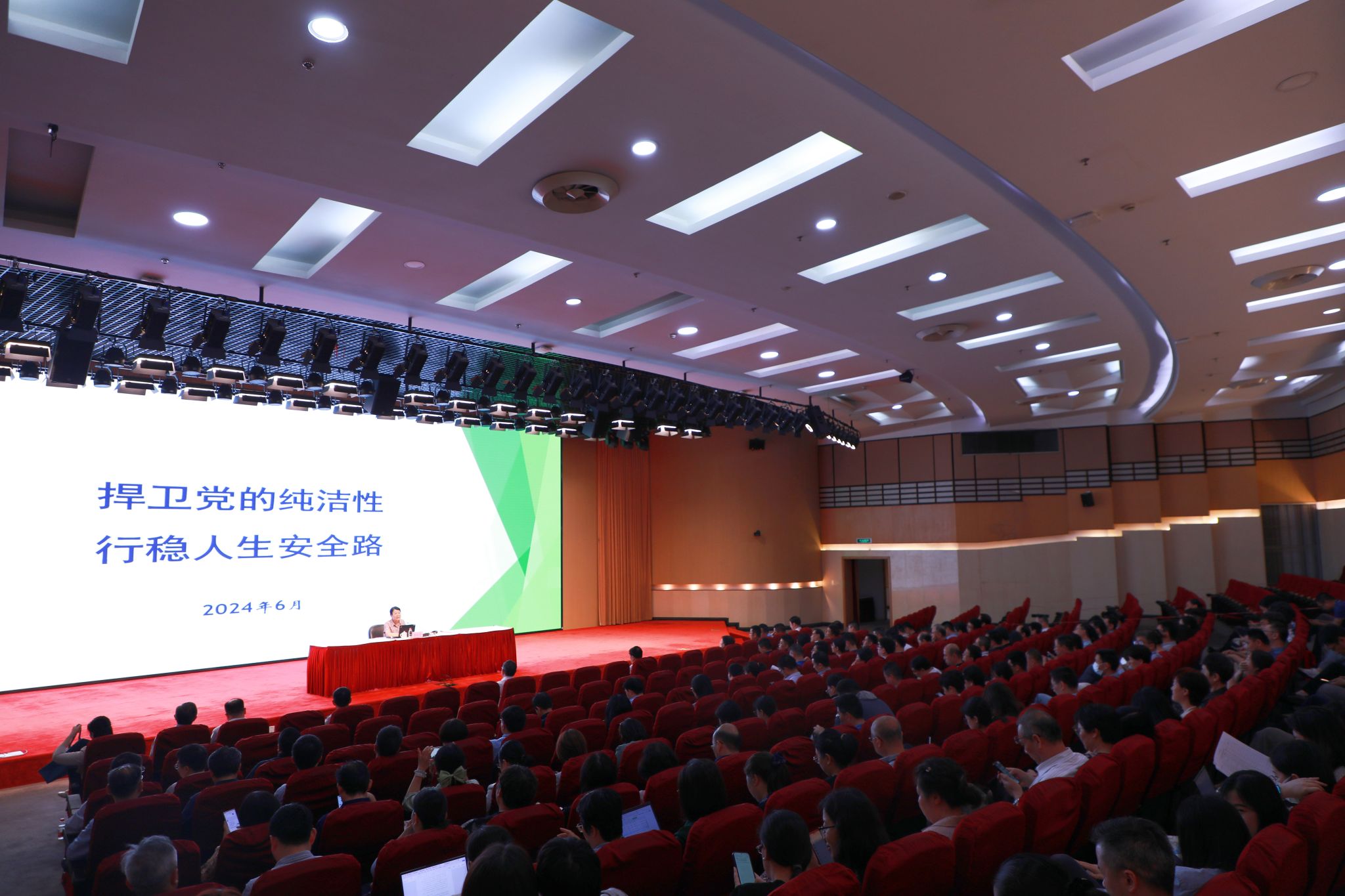 李秋芳作题为《捍卫党的纯洁性,行稳人生安全路》的辅导报告,她从“党的纪律理念、作用与党纪制定发展历程”“开展党纪学习教育的现实针对性”“学习执行党的纪律的着力点”“落实主体责任,强化党纪执行力”四个方面,详细介绍了中国共产党一路走来狠抓纪律建设的历程,深刻阐释了此次《中国共产党纪律处分条例》修订的现实针对性,深入讲解了《中国共产党纪律处分条例》内容,并辅以翔实的案例,为党纪学习教育学出效果,扎实推进党纪学习教育常态化给出建议。她谈到,全党开展党纪学习教育,广大党员,特别是党员干部要“既要干事又要干净,用党的纪律管好自己,才能行稳人生安全路”。