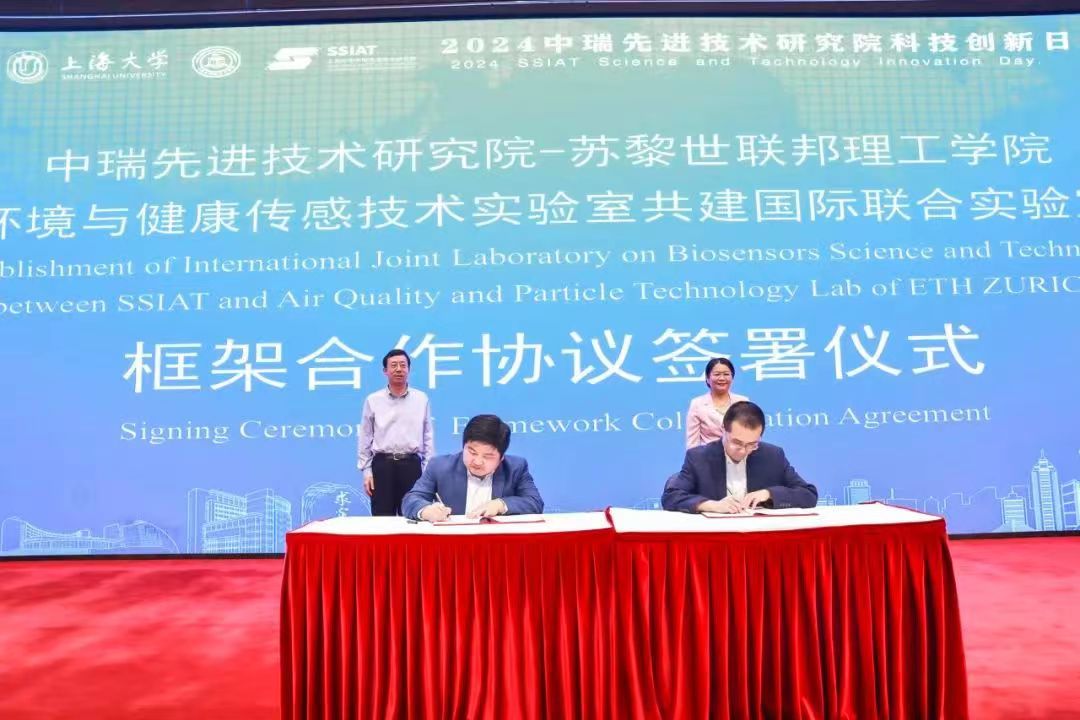 市科委副主任黄红、校党委副书记段勇见证了365完美体育中瑞先进技术研究院与苏黎世联邦理工学院环境与健康传感技术实验室共建国际联合实验室框架合作协议签署仪式。