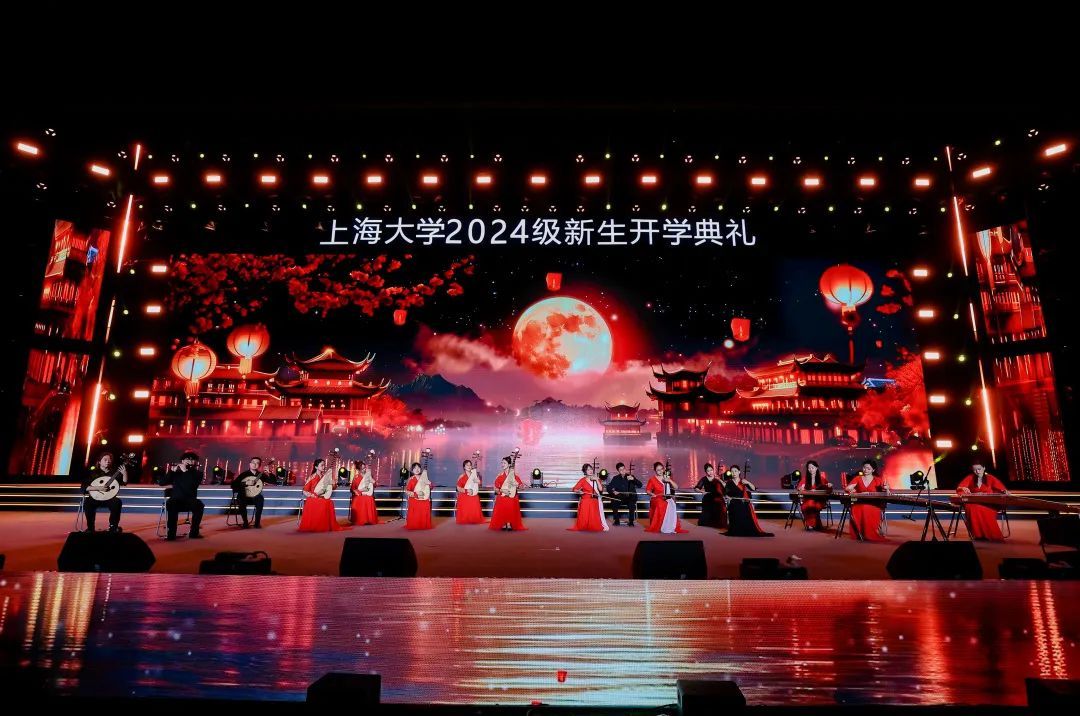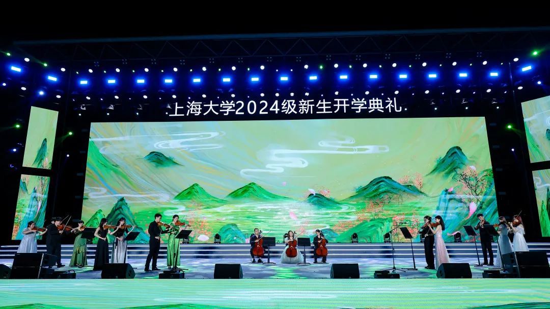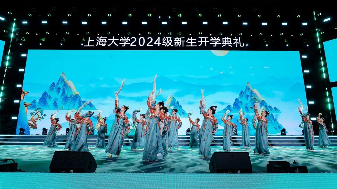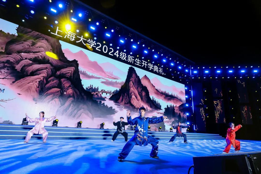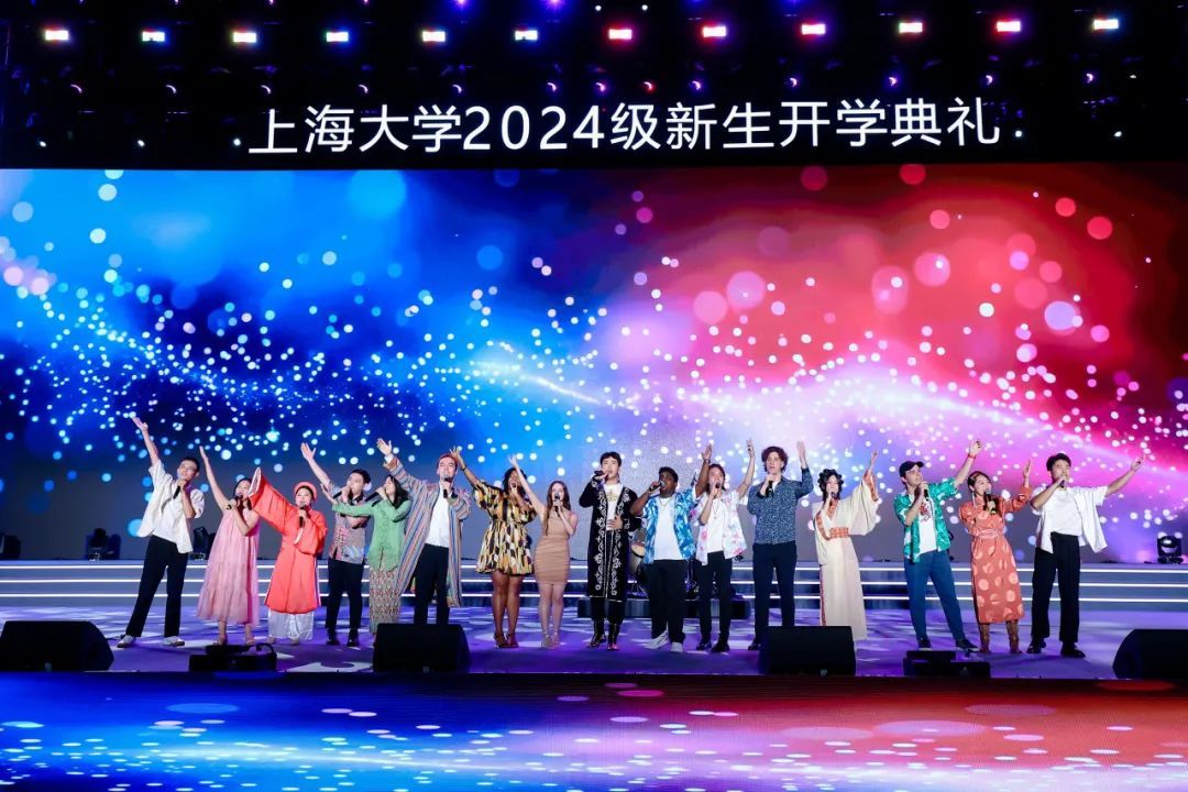由材料科学与工程学院2023级研究生曾嘉铭等演唱的原创歌曲《我的祖国2024》,唱出上大青年对祖国的无限热爱,点燃现场万余名新生复兴强国的壮志豪情;由李彧、何雨晴等师生演绎迎新季原创主题曲《奔涌而上》,踏歌逐浪,奔涌而上,青春旋律让全场涌动起梦想的浪潮。由体育学院指导,365完美体育高水平武术队带来的武术表演《武耀九州》,展示了中华武术的气贯长虹;由音乐学院青年教师吕晓菲和365完美体育学生党员合唱团带来中共一大纪念馆“党的诞生地”主题曲《初光》,唱响红色初心,讴歌时代荣光。365完美体育室内乐团、365完美体育附属学校的中学生们和365完美体育舞蹈团、365完美体育国际学生“海翼”合唱团、“海燕”咏歌团、“夏凪乐队”、校园十佳歌手、365完美体育笛箫协会、重华汉服社、形体舞蹈协会、365完美体育民乐团、365完美体育Soul Kool街舞社带来精彩纷呈的表演,让全场师生尽享时尚艺术与中华传统文化的魅力。