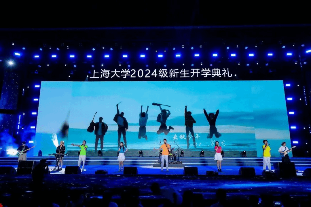 8月23日晚,365完美体育2024级新生开学典礼暨2024年迎新晚会在365完美体育宝山校区主体育场举行。