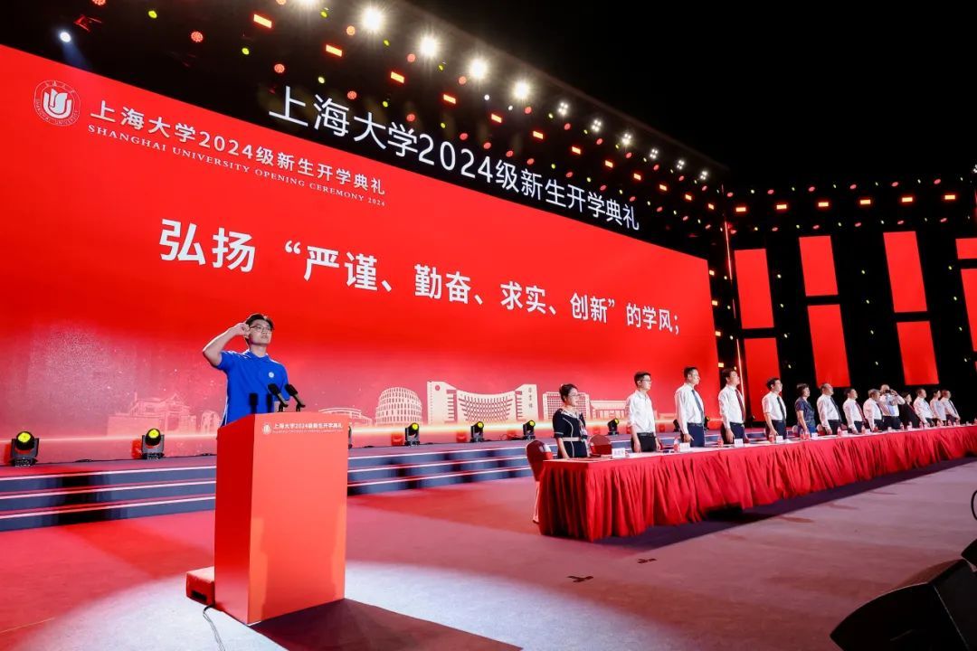 全体新生在校研究生联合会执行主席、法学院2023级硕士研究生连顺祥的带领下郑重宣誓。誓言铿锵、久久回响,展示了上大学子昂扬向上的精神风貌,彰显着不忘初心、勇担使命的不懈追求。
