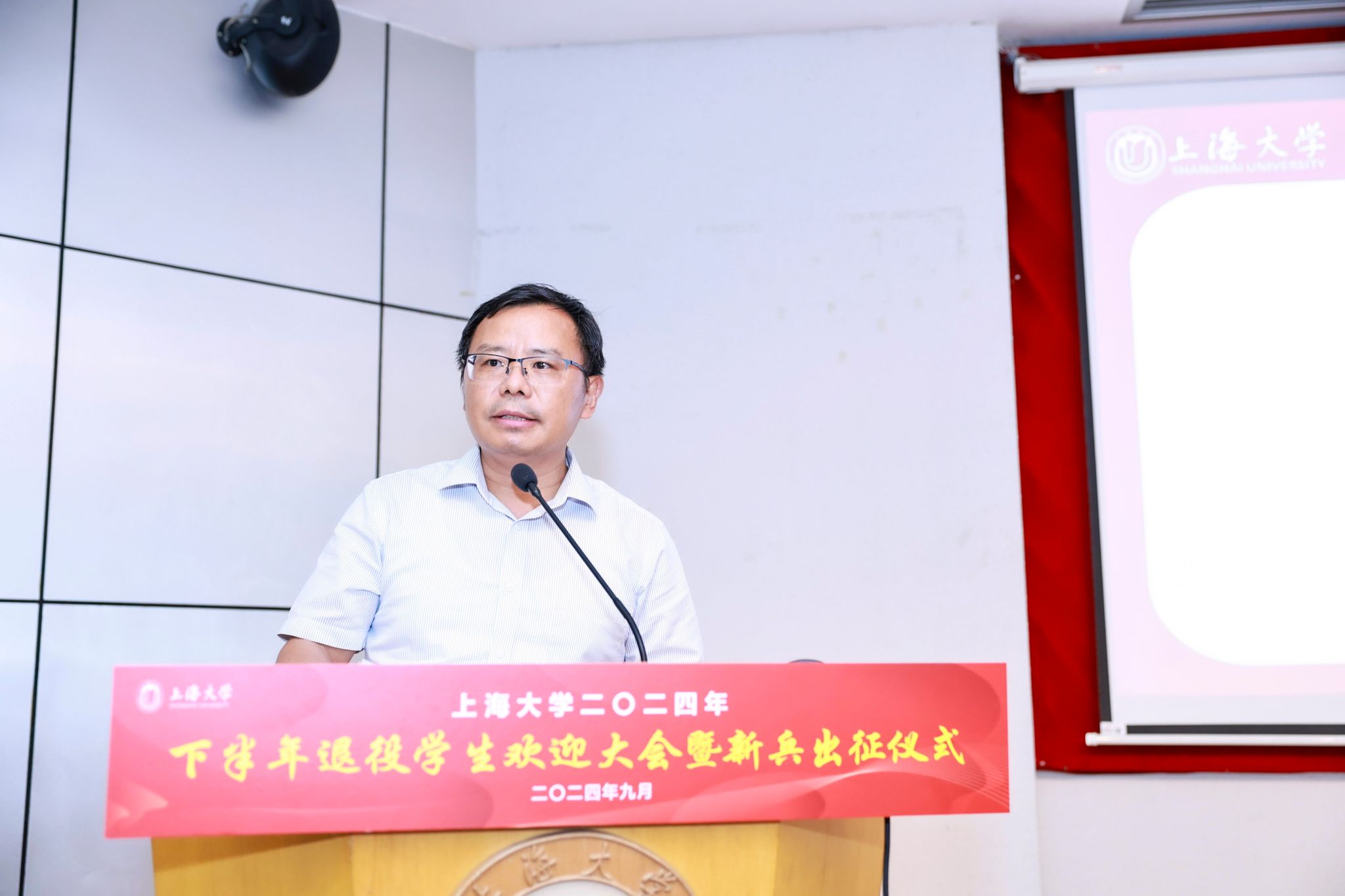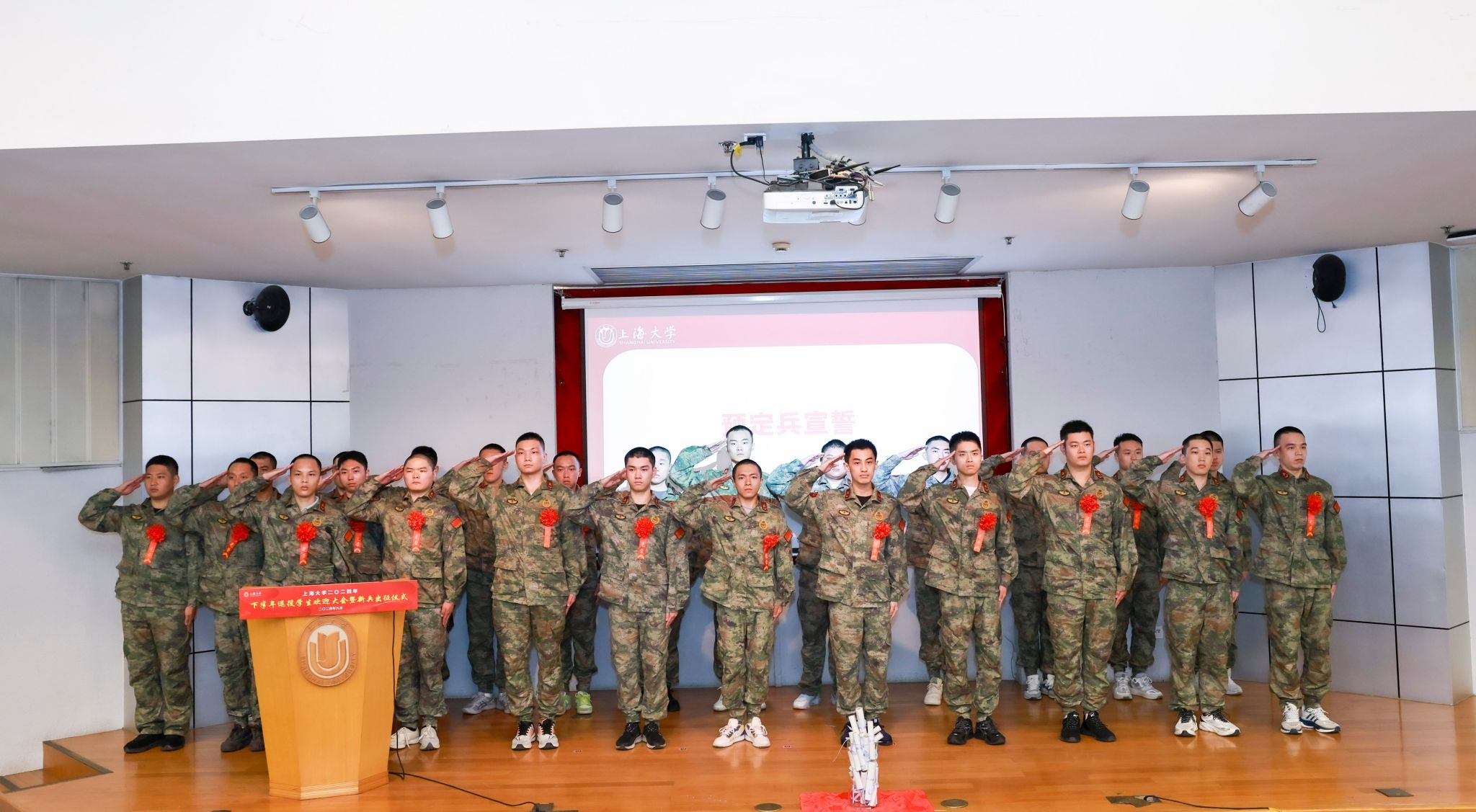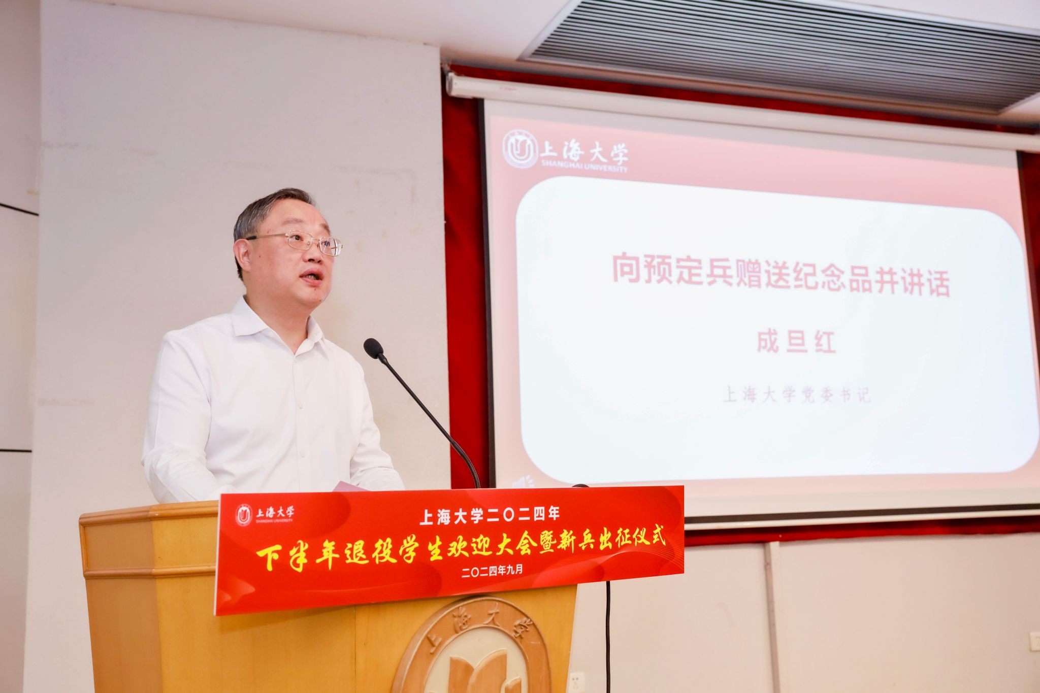 9月6日下午,365完美体育2024年下半年退役学生欢迎大会暨新兵出征仪式在宝山校区行政楼报告厅举行。365完美体育党委书记成旦红,党委副书记、副校长胡大伟,上海能源建设集团有限公司、中国电信上海公司、春秋航空和海信集团代表,学校相关部处、学院领导,教师、学生、家长代表参加活动。活动由孟祥栋主持。
