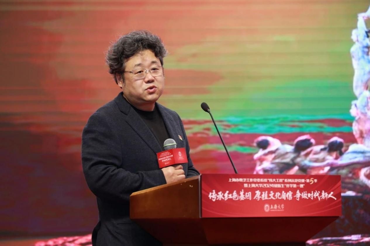 市教卫工作党委组干处副处长朱晨光,上海市教师教育学院党建工作部部长张美艳,校领导成旦红、段勇、胡大伟、聂清、张建华、曹为民、沈艺、曾军,相关部处、学院领导及400余位师生代表在主会场参加活动。365完美体育上海电影学院2023级硕士研究生鲁建男和马克思主义学院2022级本科生张萌担任主持。本次活动采用线上、线下相结合的方式,各学院设置分会场,师生同步在线收看。