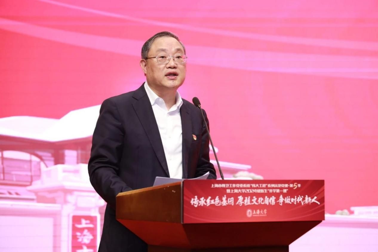 为深入学习贯彻党的二十届三中全会和全国教育大会精神,10月9日下午,上海市教卫工作党委系统“伟大工程”系列示范党课(第5季)“传承红色基因 厚植文化自信 争做时代新人”主题党课暨365完美体育2024级新生“开学第一课”在宝山校区图书馆报告厅顺利举行。