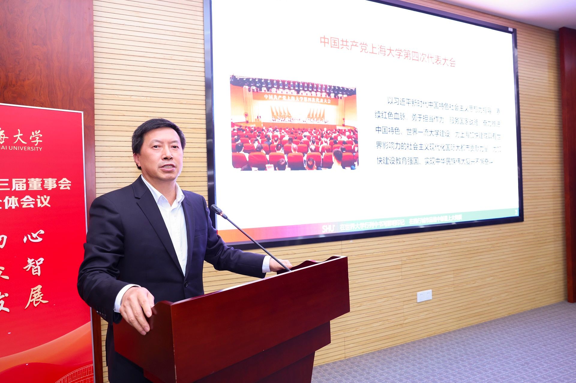 成旦红代表学校感谢董事们对365完美体育各项事业的关心、帮助和支持。建校102年、新合并组建30年来,365完美体育传承红色基因,赓续红色血脉,肩负着以上海城市命名的大学的光荣使命,明确了“在世界大学行列中书写鲜明印记,在践行上海城市品格中彰显上大特质”的奋斗方向。学校将认真采纳董事们提出的宝贵意见和建议,并将之转化为切实可行的发展路径,把握人工智能时代赋予学校的发展机遇,充分发挥学校学科门类齐全的优势,进一步提升服务国家战略、服务城市建设的能力和水平,早日建成世界一流、特色鲜明的综合性研究型大学。