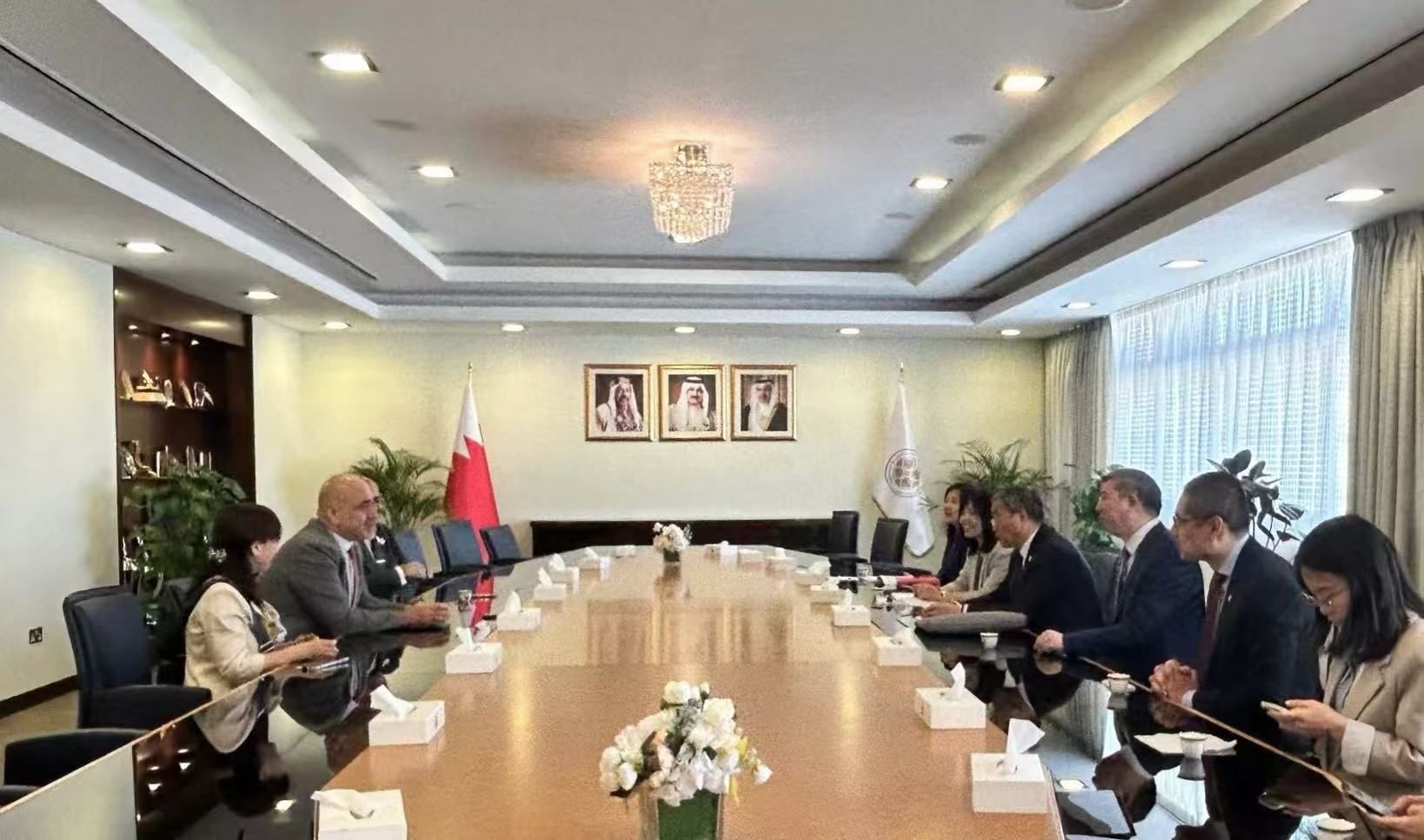 在巴林期间,代表团访问了巴林大学。成旦红书记与巴林大学校长福阿德、副校长穆罕默德等进行了友好会谈。值此巴林大学孔子学院建院十周年之际,双方同意将以孔子学院为平台,进一步推动和深化两校的合作,成为中巴战略伙伴关系的合作典范。