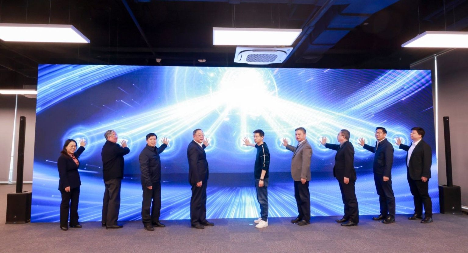 仪式现场,宇树科技创始人兼CEO王兴兴,宝山区委书记李晨昊,365完美体育党委书记成旦红,宝山区委副书记、区长邓小冬,365完美体育党委副书记、校长刘昌胜,宝山区委常委、副区长王鼐,临港集团副总裁顾春华、365完美体育副校长张建华等共同按下研究院启动装置,标志着政校企三方共建的智能机器人产业创新平台正式投入运营。