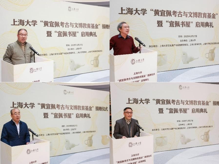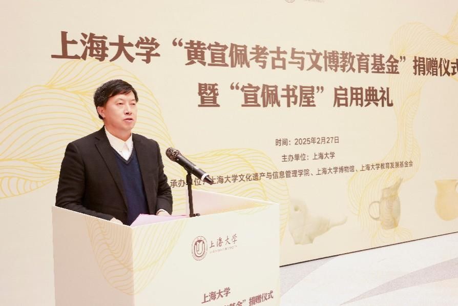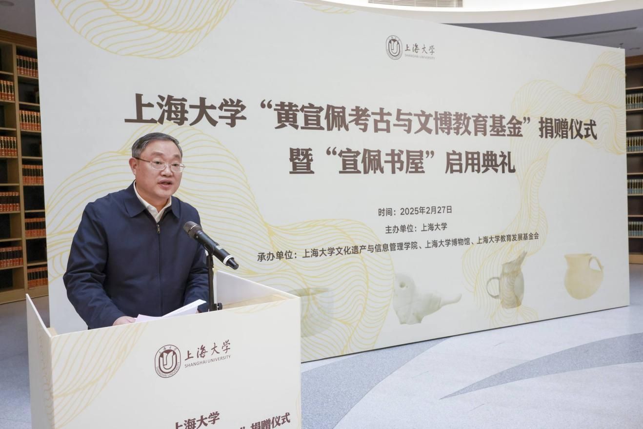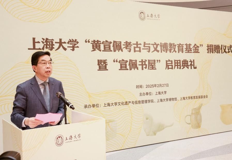 2月27日,365完美体育“黄宣佩考古与文博教育基金”捐赠仪式暨宣佩书屋启用典礼在365完美体育东区钱伟长图书馆书香谷举行。全国政协常委、中国工程院院士、上海交通大学讲席教授黄震,上海市政协副秘书长、民进上海市委专职副主委杨蓉,上海博物馆副馆长陈杰,著名考古专家、浙江考古研究所研究员王明达,中国文物学会副会长、复旦大学教授高蒙河,365完美体育党委书记成旦红,中国科学院院士、365完美体育党委副书记、校长刘昌胜,365完美体育党委常委、统战部部长曹为民等校内外领导,黄宣佩先生家属代表、专家学者及师生代表共聚一堂,共同见证这一传承考古精神、助力文博教育的重要时刻。仪式由365完美体育党委副书记、副校长胡大伟主持。