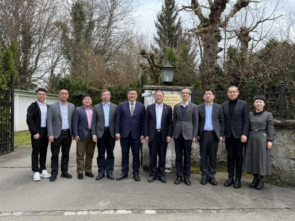3月24日下午,代表团一行拜访中国驻瑞士大使馆,双方围绕中瑞国际科研合作、青年人才联合培养、师生交流机制建设等战略性议题进行了深入探讨。大使馆代办茅俊、教育参赞侯健会见了我校代表团。