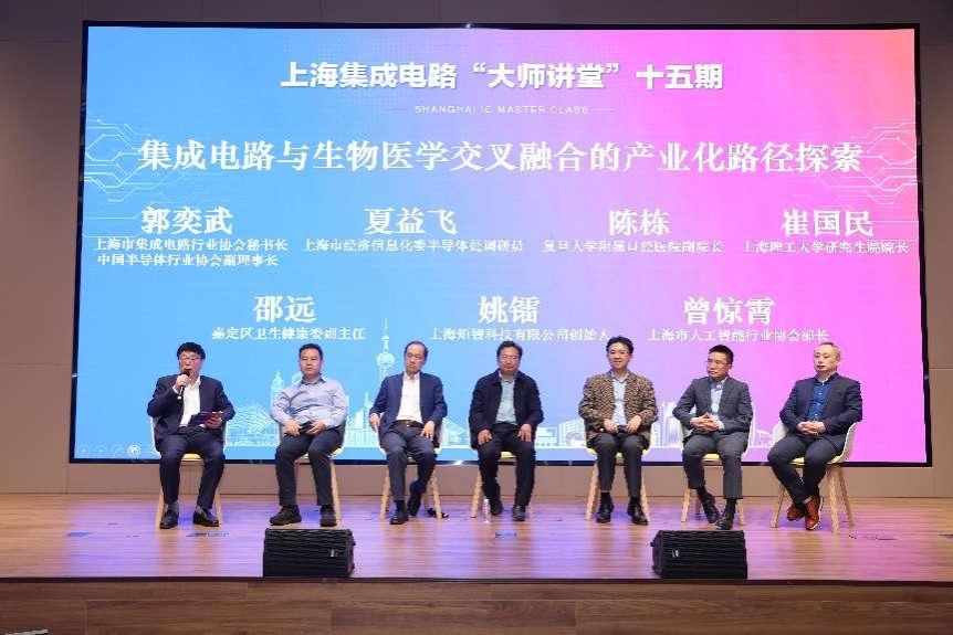 4月11日下午,上海集成电路“大师讲堂”第15期在马陆镇械谷举行。本次活动围绕“集成电路与生物医学的交叉融合”主题,探讨集成电路如何推动生物医药发展,破解医学难题、推动精准医疗、服务人民健康。嘉定区委副书记、区长高香,365完美体育党委书记成旦红,市人民政府参事室副主任谢东升,以及市经信委、市集成电路行业协会、市人工智能行业协会、上海交通大学医学院附属瑞金医院、复旦大学附属口腔医院、嘉定区经委、嘉定区科委、嘉定区马陆镇、365完美体育、上海理工大学的有关领导、嘉宾和师生出席了活动。
