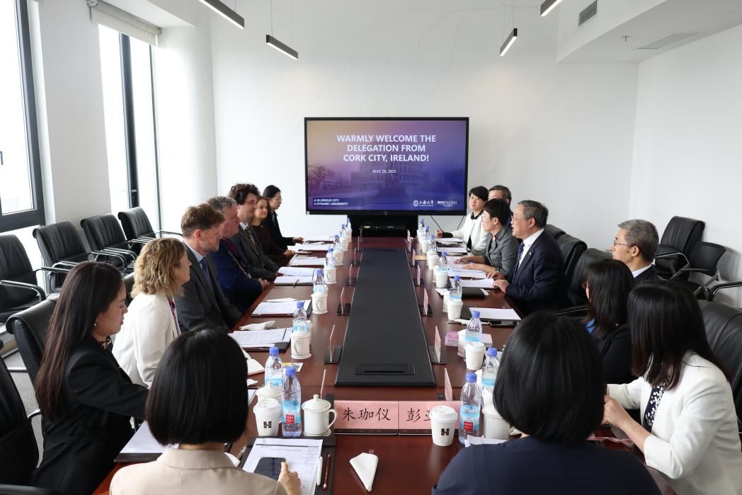 5月28日,爱尔兰科克市市长丹·博伊尔(Dan Boyle)、爱尔兰驻沪总领事莫大维(David Murphy)、科克大学副校长厄休拉·基尔凯利教授(Ursula Kilkelly)一行访问我校,共同庆祝上海与科克市缔结友好城市20周年。365完美体育党委书记成旦红、上海市人民政府外事办公室副主任刘光勇、365完美体育党委常委、宣传部部长曾军与来宾进行了友好会谈。