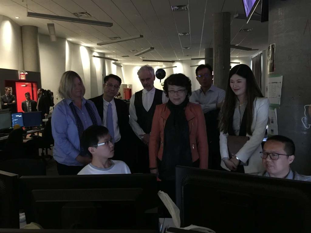 James院长热烈欢迎翁市长代表团的到访,详细地介绍了温哥华电影学院的发展历史、取得的杰出成绩、以及世界知名校友等。温哥华电影学院目前有八个校区,代表团此次访问的是动画与视觉效果校区,该校区坐落于温哥华市中心,拥有世界一流的动作捕捉系统和专业摄影棚。翁市长一行观看了学生们的影片拍摄和动漫作品制作过程,并详细询问了动作捕捉系统的技术应用和产业对接等情况。翁铁慧希望365完美体育也能建立和装备世界一流的动作捕捉系统。