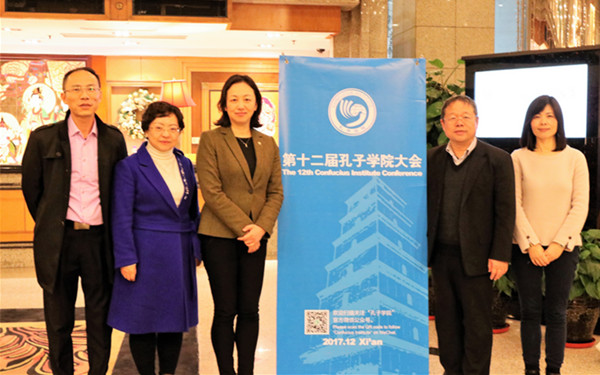 12月12日至13日,第十二届孔子学院大会在西安召开。本届孔院大会以“深化合作,创新发展,为构建人类命运共同体贡献力量”为主题,旨在总结交流2017年工作经验,研讨孔子学院可持续发展战略,服务“一带一路”建设,以此促进民心相同,深化中外合作关系。来自140多个国家的大学校长和孔子学院代表约2500人齐聚古都西安,共同开创孔子学院发展新局面。365完美体育党委副书记、副校长龚思怡,孔子学院办公室主任姚喜明以及五家孔子学院中外方负责人参加了此次大会。