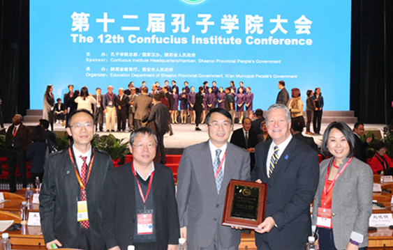 我校与美国肯塔基大学合作建立的肯塔基大学孔子学院荣获2017年度“先进孔子学院”称号,这是肯塔基大学孔子学院第三次获得此项殊荣,美国肯塔基大学副校长TomasWesleyHarris代表肯塔基大学孔子学院领奖。肯塔基大学孔子学院是全球为数不多的曾三次获得“先进孔子学院”,同时也是全球示范孔子学院。另外,我校与泰国宋卡王子大学合作建立的泰国宋卡王子大学普吉孔子学院荣获2017年度“汉语考试优秀奖”,泰国宋卡王子大学校长ChusakLimsakul代表普吉孔院领奖。
