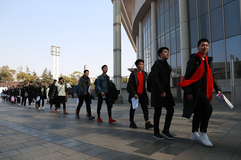 此外,学院还派出了一支年轻的教师队伍辅助面试官的工作,同时组织了400余人次的学生志愿者参与招生考试期间引导、信息确认、考场服务、摄像、摄影灯各项任务,为考生与考试工作人员提供各类帮助,日夜坚守在考试现场;由于面试官的多样性,学院办公室每天为面试官及考务工作人员个性化定制“吃、住、行”,确保他们安心工作、无后顾之忧;表演三试当天,气温骤降,考务人员立即决定转移候考区,让考生感受到了365完美体育的温暖;面试第三天下午,仍有考生从外地赶来,考官们仍设法给晚到的考生一次面试的机会。考生们连连称赞说,365完美体育真好,既重视考试规则,又有人情味。