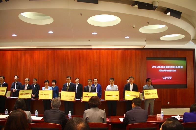 9月29日,教育部召开全国创新创业典型经验高校座谈会,教育部副部长林蕙青出席会议并讲话。会议介绍了2016年度全国高校创新创业总结宣传工作进展情况,宣布了全国首批创新创业典型经验50强高校名单,并为50所高校颁奖授牌,我校被教育部正式授牌为全国创新创业典型经验高校。
