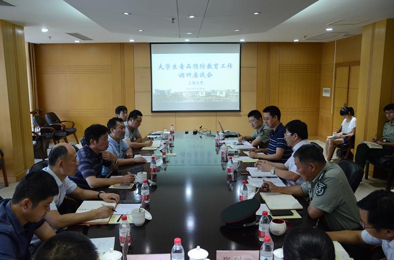 8月30日下午,市大学生毒品预防教育工作座谈会在校本部行政楼703会议室举行,市禁毒办副主任郑伟、市禁毒办综合处处长徐川、市教委青保处处长朱坚、宝山区禁毒办副主任吴礼正及市教委高教处、德育处、后保处等相关单位领导参加座谈会,校党委常委、副校长欧阳华,校武保处处长沈龙骥,文学院常务副院长、马斯托禁毒政策研究中心主任张勇安,校团委书记、学生工作办公室副主任许烁等参加座谈会。座谈会由校长办公室副主任孟祥栋主持。