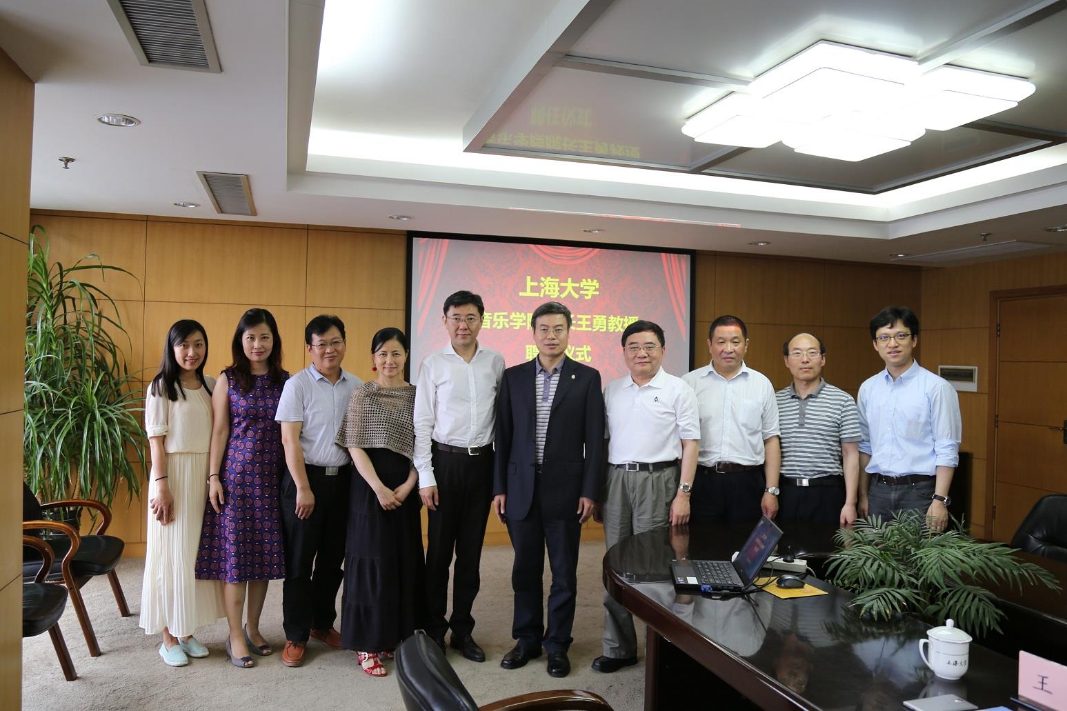 6月21日下午,我校音乐学院院长王勇聘任签约仪式在行政楼803会议室正式举行。校长金东寒院士、人事处处长朱明原以及音乐学院全体领导班子参加仪式。仪式由党委组织部部长王军华主持。