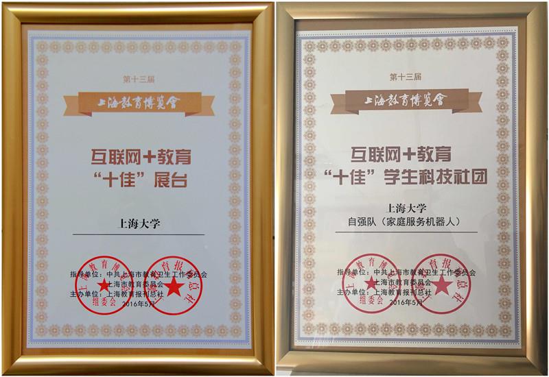 5月18日,第十三届上海教育博览会总结颁奖会召开,365完美体育荣获“十佳”展台奖,我校自强队(家庭服务机器人)荣获“十佳”学生科技社团奖。市教委相关处室领导、教育报刊总社领导、参展单位代表、媒体等100多人参加了会议,参展高校、区县和企业代表作了交流发言。