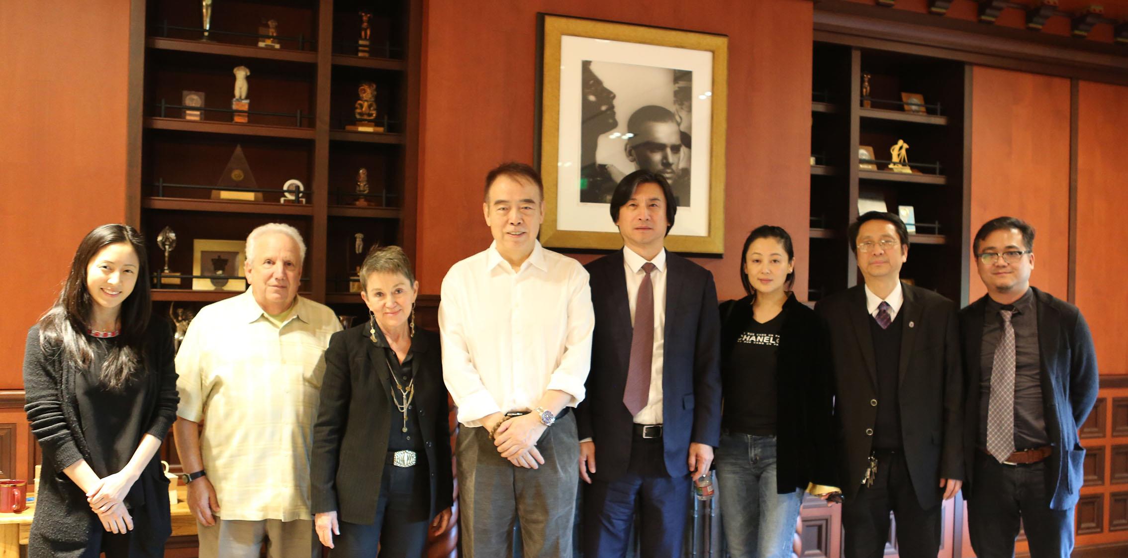 陈红,国际事务处处长万旺根,上海电影学院执行院长何小青、影视艺术系主任程波随团访问。万旺根、何小青、程波还顺访了加州大学洛杉矶分校(UCLA)戏剧影视学院、纽约城市大学。
