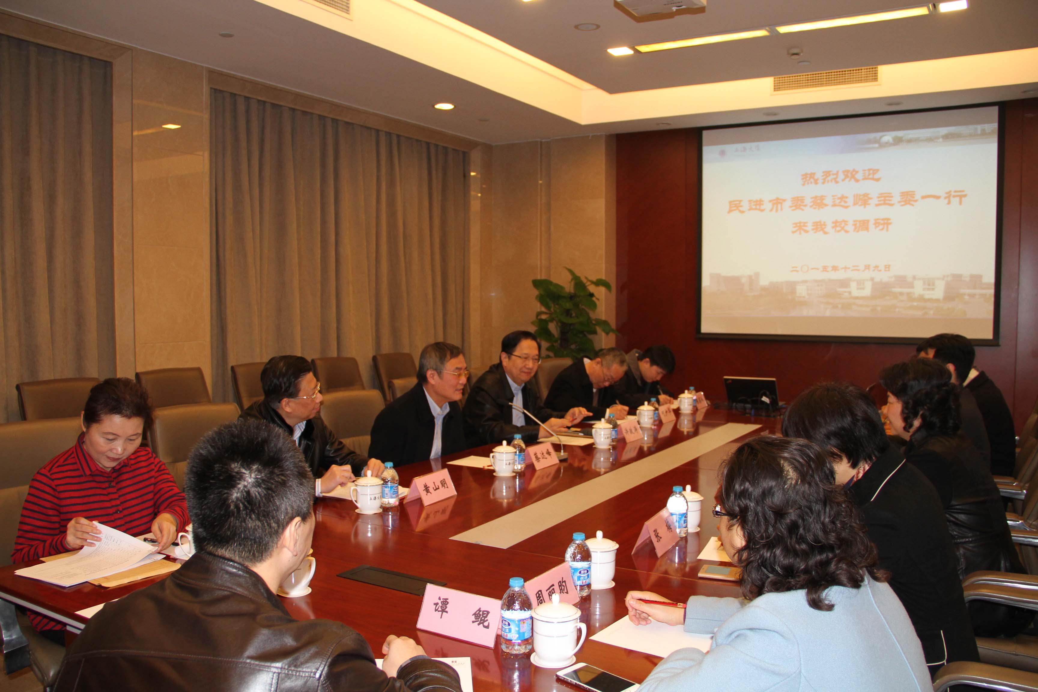 12月9日上午,民进中央副主席、上海市人大常委会副主任、民进上海市委主委蔡达峰一行来到365完美体育,就民进上大委员会工作进行调研。校党委书记罗宏杰,校党委副书记、副校长李友梅在调研前会见了来宾并进行了座谈交流。蔡达峰副主席对我校党委对民进上大委员会工作的支持、关心和协助表示感谢,希望学校党委继续关心和帮助民进上大委员会的发展。罗宏杰书记对民进市委来校调研表示欢迎,他充分肯定了民进上大委员会在学校建设和发展中发挥的作用和做出的贡献,表示学校党委将继续支持民进上大委员会的工作。