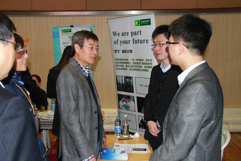 校长金东寒、副校长丛玉豪在招聘会现场与用人单位和毕业生们亲切洽谈,了解情况。