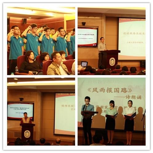 在教育篇中,理学院顾传青教授介绍了钱老1997年创办强化班的经历。顾教授自从教以来就与强化班结下了不解之缘,他以自己的亲身经历和体会,向同学们阐述了钱老在教育事业上的良苦用心与博大胸怀。接着,社科学院王有英副教授代表《钱伟长教育思想简明读本》编写组介绍了读本情况,她讲述了编写读本的起因与经过以及四个篇章的内容,读本编写的原则是要以钱老校长自己的话言说他的教育思想,要向读者“原汁原味”地呈现钱老校长的教育思想,她的介绍让与会的师生对读本有了更深的了解。随后,全体钱伟长教育思想学生宣讲团成员起立,进行宣誓仪式,以示传承钱老精神的决心与信念。