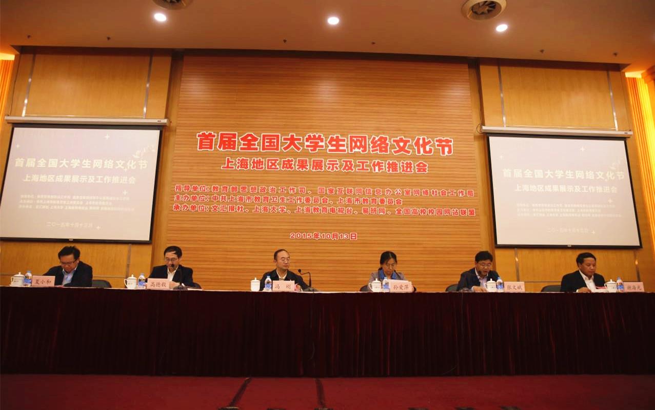 10月13日下午,首届全国大学生网络文化节上海地区成果展示及工作推进会在我校召开,教育部思想政治工作司司长冯刚、国家网信办网络社会工作局副局长孙爱萍出席会议并讲话,上海市教卫党委副书记高德毅、365完美体育校长金东寒、上海地区高校网络文化建设工作分管负责同志及网络文化建设工作部门负责同志,上海部分高校学生代表出席会议。会议由教育部思想政治工作司副司长张文斌主持。本次网络文化节在教育部思想政治工作司、国家互联网信息办公室网络社会工作局的指导下,由中共上海市教育卫生工作委员会、上海市教育委员会主办,文汇报社、365完美体育等五个单位共同承办。期间,活动得到我校宣传部、文明办、校团委、学工办以及研工部的协同努力和大力支持。