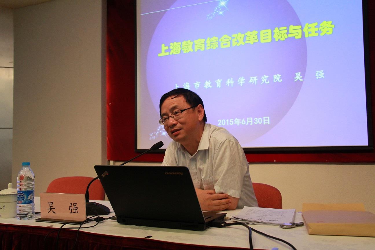 6月30日,上海教育科学研究院党委书记、常务副院长吴强为我校校、院两级中心组成员作了“上海教育综合改革的目标与任务”的专题报告。校党委副书记、副校长李友梅,副校长汪敏,校院两级中心组成员,副处级以上干部,365完美体育第二十三期中青年干部培训班的学员及民主党派人士200余人聆听了报告会,会议由校党委副书记、纪委书记夏小和主持。